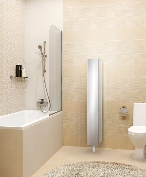Фасадное зеркало 22*160 см, боковые два зеркала 18*160 см, прекрасно впишутся в интерьер и будут исключительно полезны в ванной. Такая квадратная зеркальная колонна выглядит эффектно.