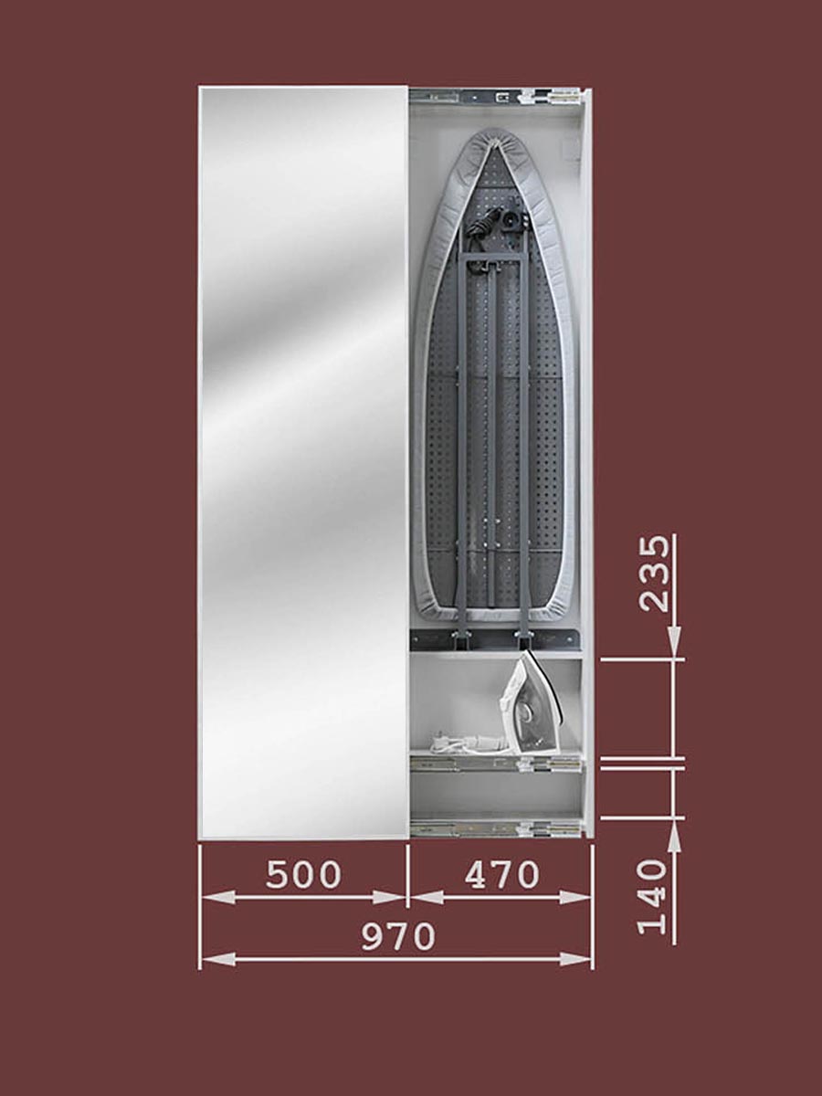 Айрон Бокс ЭКО (без зеркала) - шкаф со встроенной гладильной доской и удобными полками для хранения утюга и других гладильных принадлежностей. Фасад из ЛДСП, размер 50*180 см.