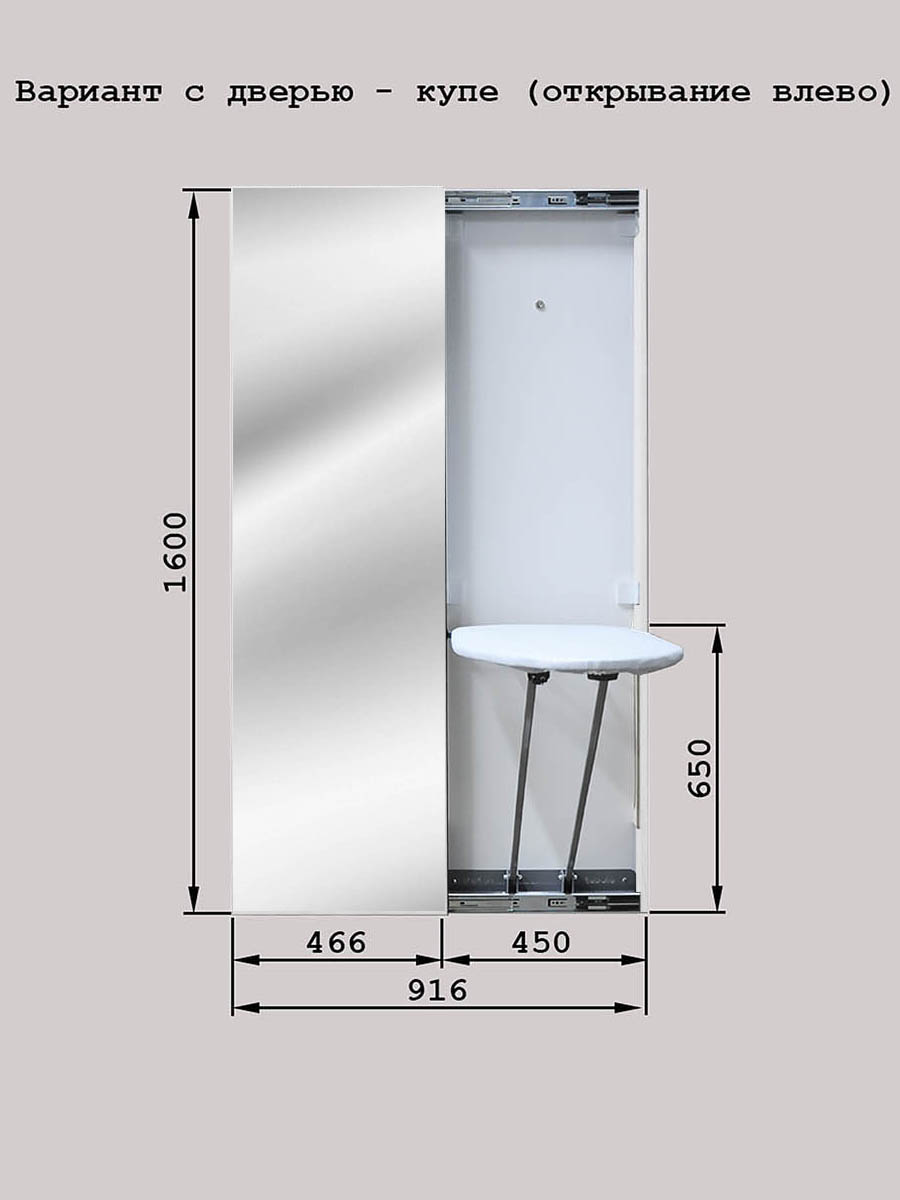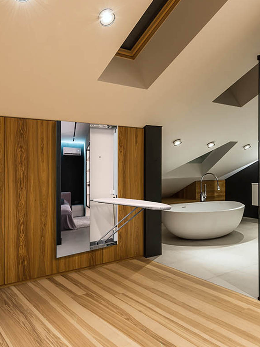 В основе механизма трансформации лежит большая гладильная поверхность из стали, термопластика или фанеры. Механизм крепится к стене на мощном кронштейне.