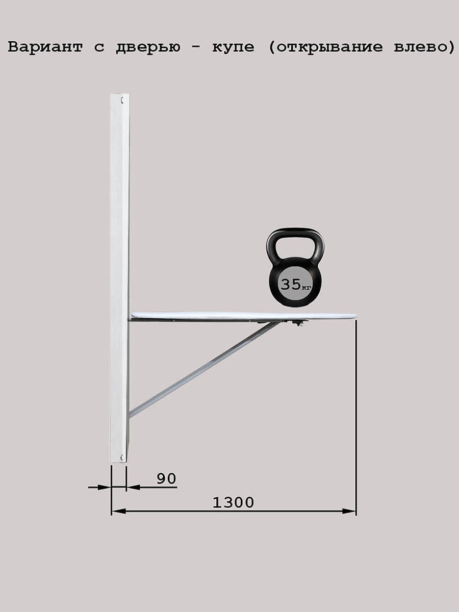 В рабочем положении доска выдерживает нагрузку до 35 кг. Это лучший показатель на рынке встроенных гладильных досок.